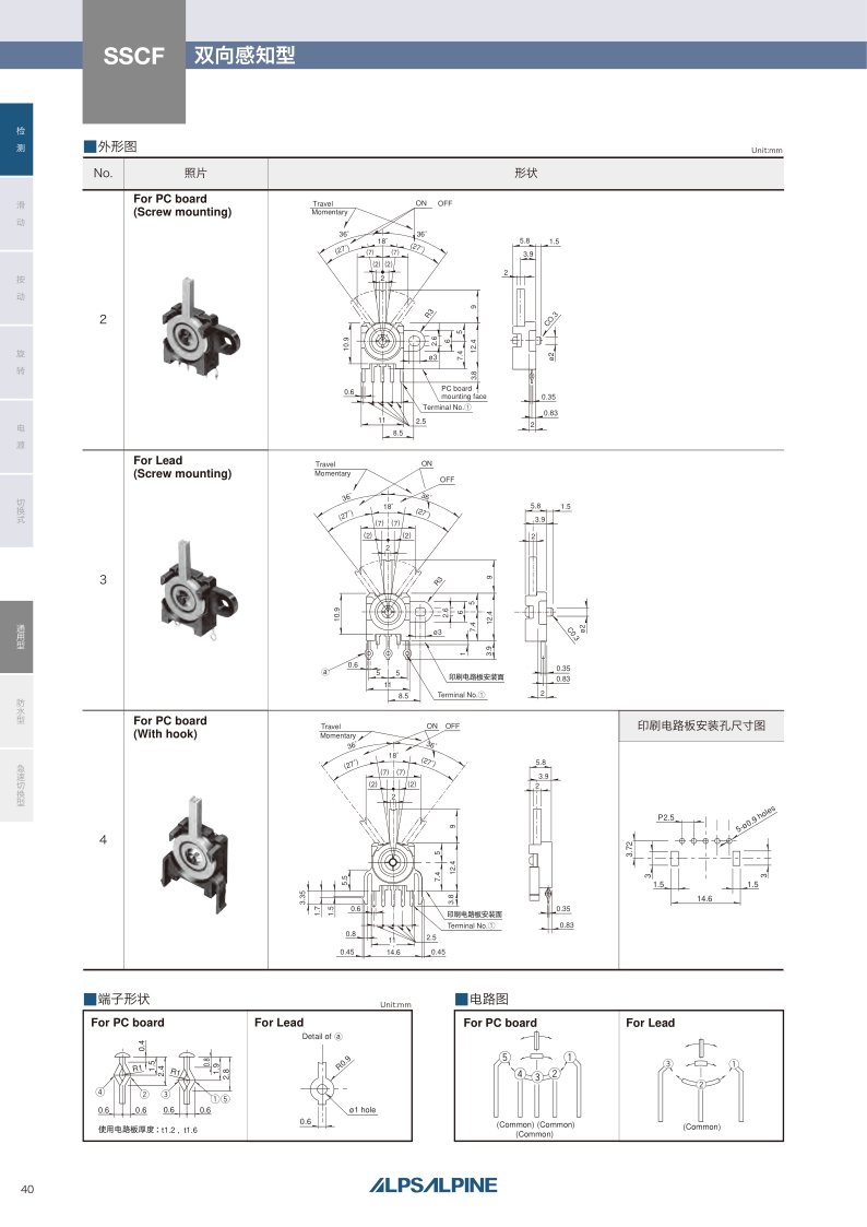 SSCF210100 照片 1 2 Non shorting For PC board 0.7N max. Screw 15.5×5.8×12.4mm