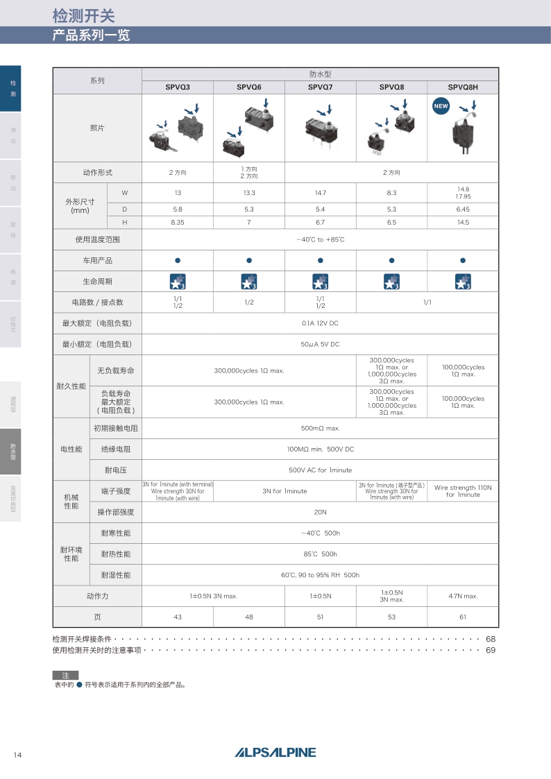 防水型 ・ 最大额定值:0.1A 12V DC ・ 动作力:1±0.5N ・ 操作寿命(无负载):300000 cycles ・ 防水及防尘型:IP67。