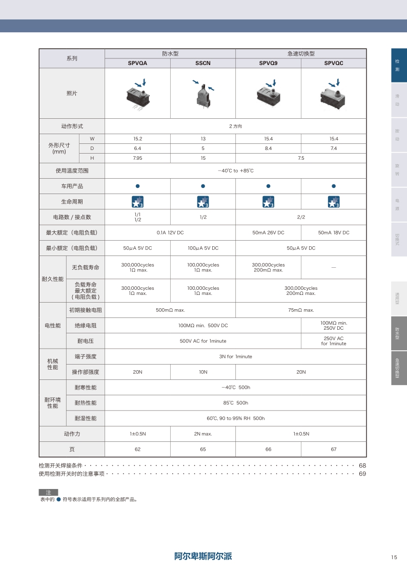 采购:SPVQ910205——ALPS检测开关