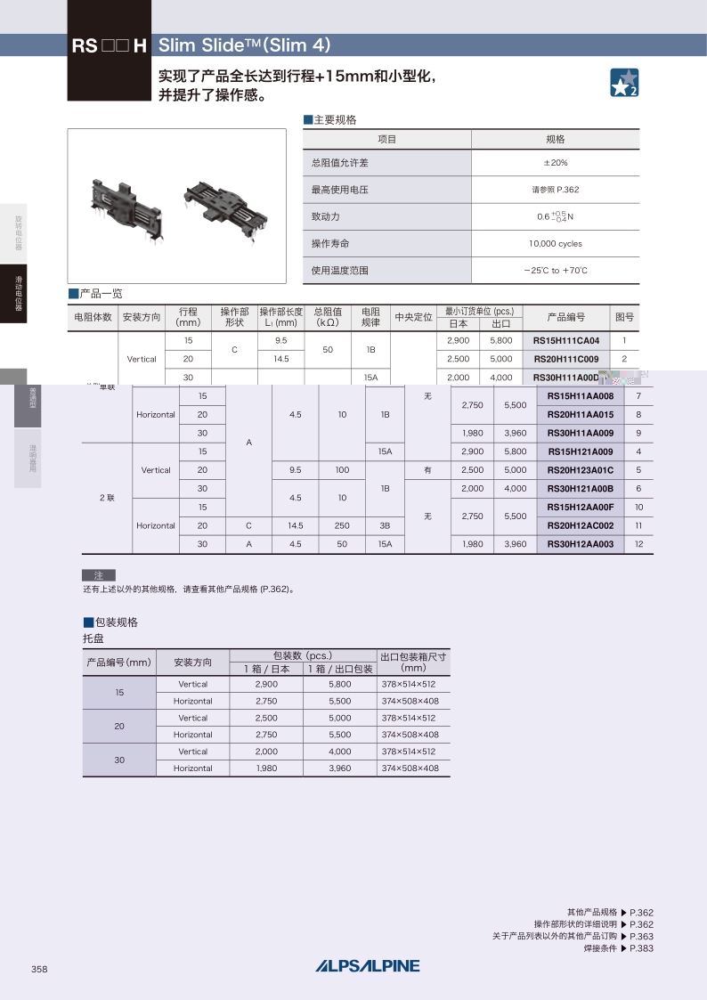 采购:RS15H系列——ALPS滑动电位器