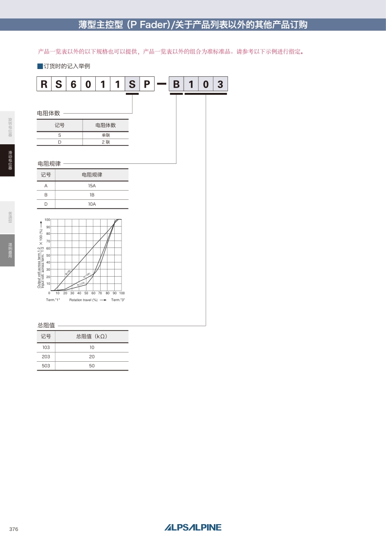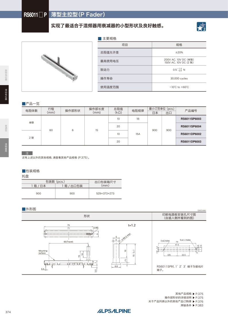 RS6011DP/RS6011SP系列——ALPS滑动电位器