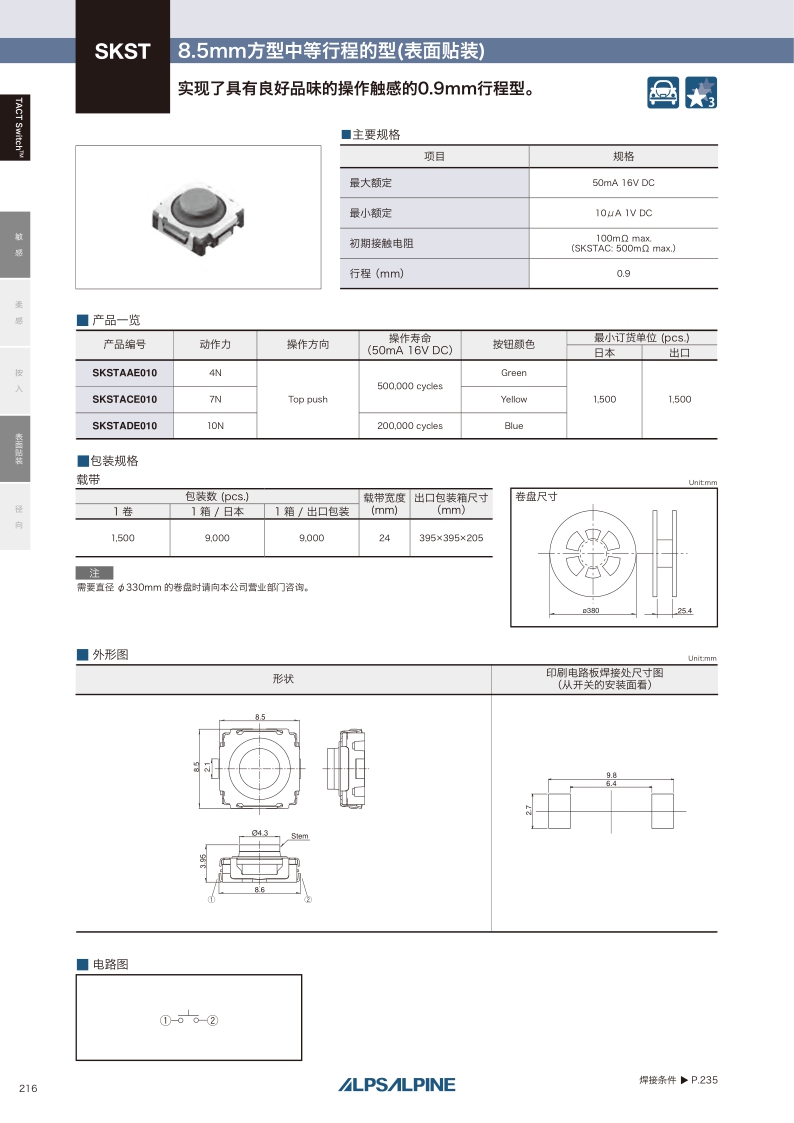 采购:SKST系列——ALPS轻触开关