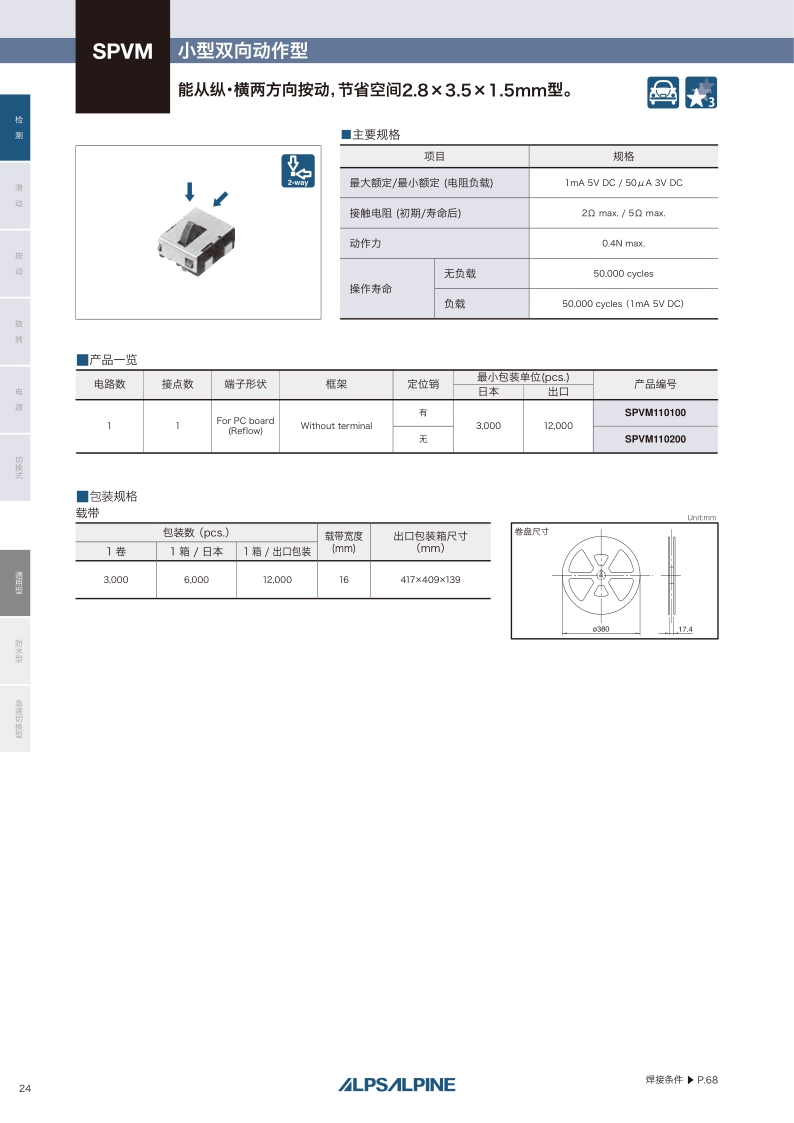 采购:SPVM系列——ALPS检测开关