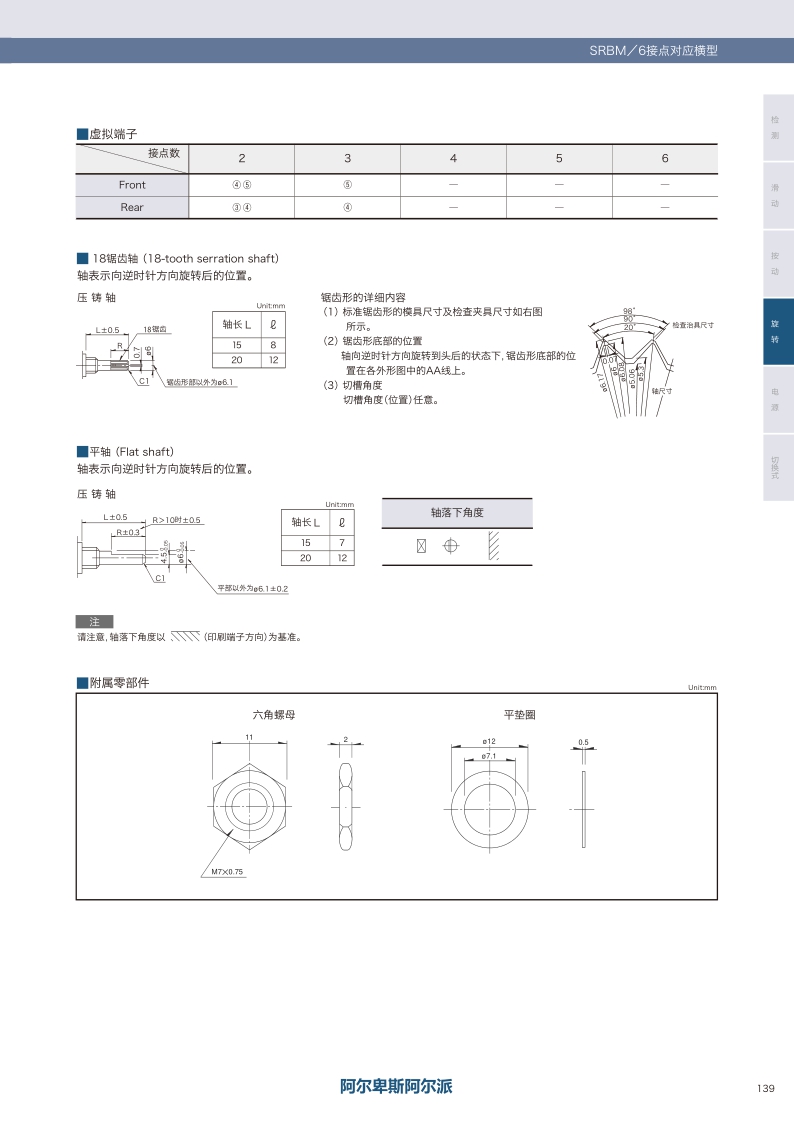 SRBM160700 照片 1 1 6 30±3° Non shorting 40±20mN·m 18-tooth serration L: 15mm 10.0×12.5×11.5mm