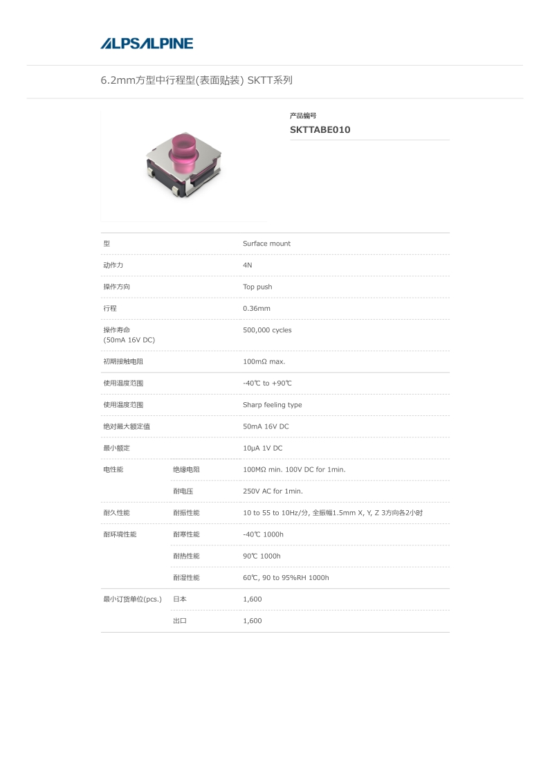 SKTTABE010——ALPS轻触开关