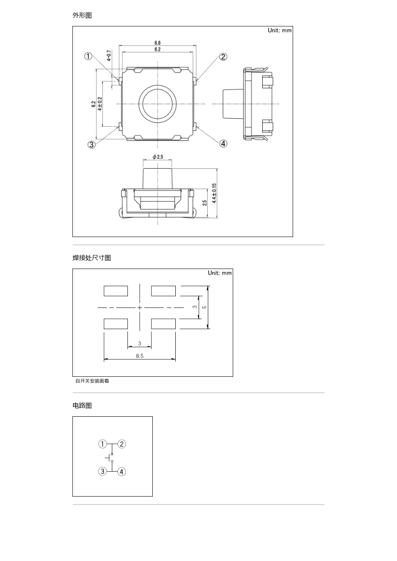 6.2mm方型中行程型(表面贴装) SKTT系列型号:SKTTABE010