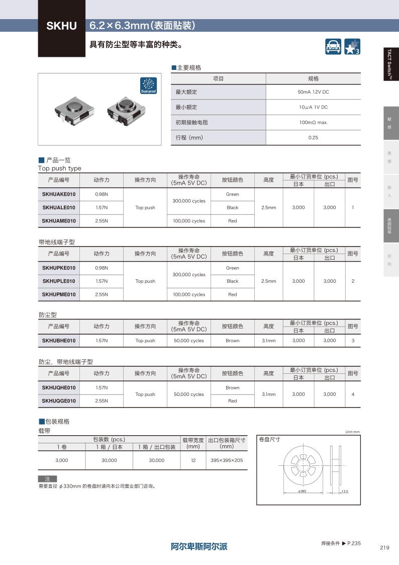采购:SKHU系列——ALPS轻触开关